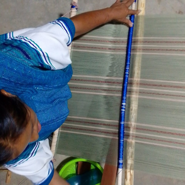- Tejido en telar de cintura con brocado tradicional de San Juan Cancuc