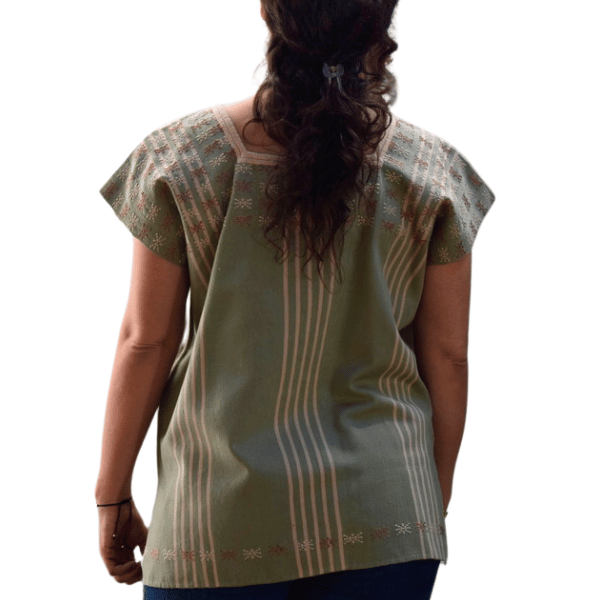 Requiere 90 horas de trabajo y es elaborada por 12 artesanas tzeltales de la ESMAS Ach’jalab Antsetic, fusionando tradición con elegancia y combinaciones modernas.